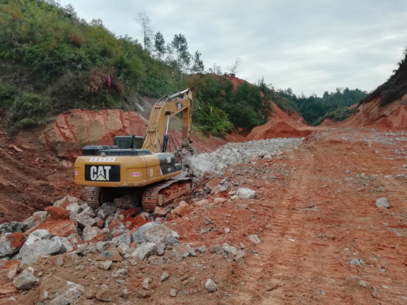 本項目在K0+810、K1+020有一通村路與本項目相交,通村路路面寬約4米,為水泥路面,由于相交處通村路高程約為425米,道路設(shè)計高程約為447米,由于高差較大,與本項目直接相接較為困難,為保障通村路附近居民在施工期間正常通行,以及陵園的正常使用,故在此結(jié)合后期保通提出建議方案:1、K1+020設(shè)置1-6×4.5拱型通道,連接?xùn)|西兩側(cè)通村路,改路B長138.326米。2、在BK0+045接上改路B后,沿道路東側(cè)山體改路,在K0+810設(shè)置1-6×4.5拱型通道,后改路連接既有通村路,改路A長457.458米。